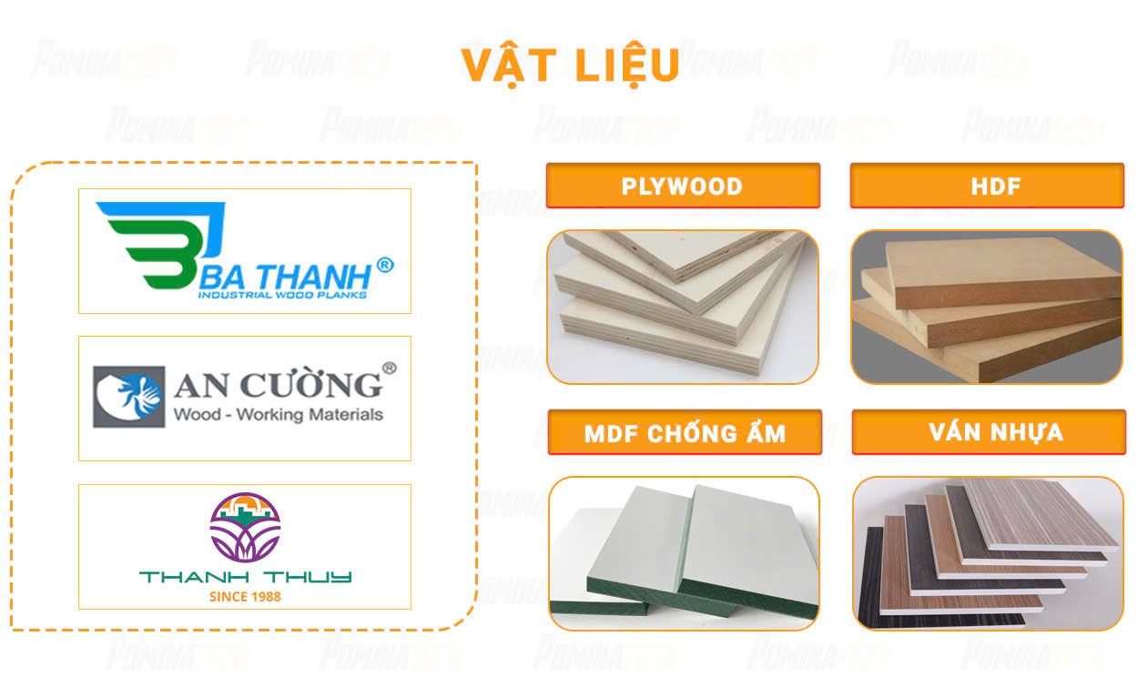 - Chất liệu: Gỗ MDF/ MDF lõi xanh chống ẩm