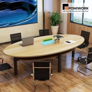 Bàn họp nhỏ gọn cho văn phòng – Thiết kế chân sắt chắc chắn, mặt gỗ cao cấp