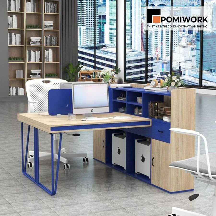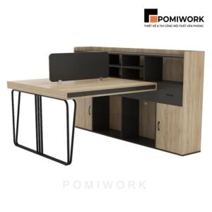 Bàn làm việc đôi văn phòng hiện đại – Kèm tủ và kệ lưu trữ đa năng