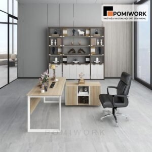 Bàn làm việc lãnh đạo kiểu dáng đẹp – Chân sắt, mặt gỗ bền bỉ
