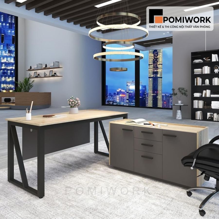 Bàn làm việc lãnh đạo hiện đại có tủ – Phong cách sang trọng, chuyên nghiệp