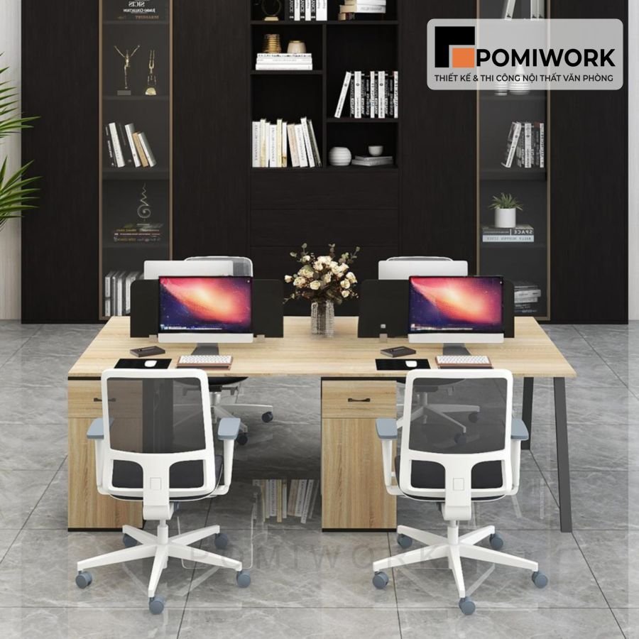 Bàn làm việc nhóm 4 người hiện đại – Bàn văn phòng dài sang trọng