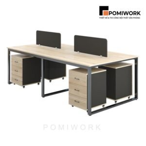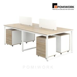 Bàn làm việc nhóm 4 người mặt gỗ khung sắt sang trọng, hiện đại