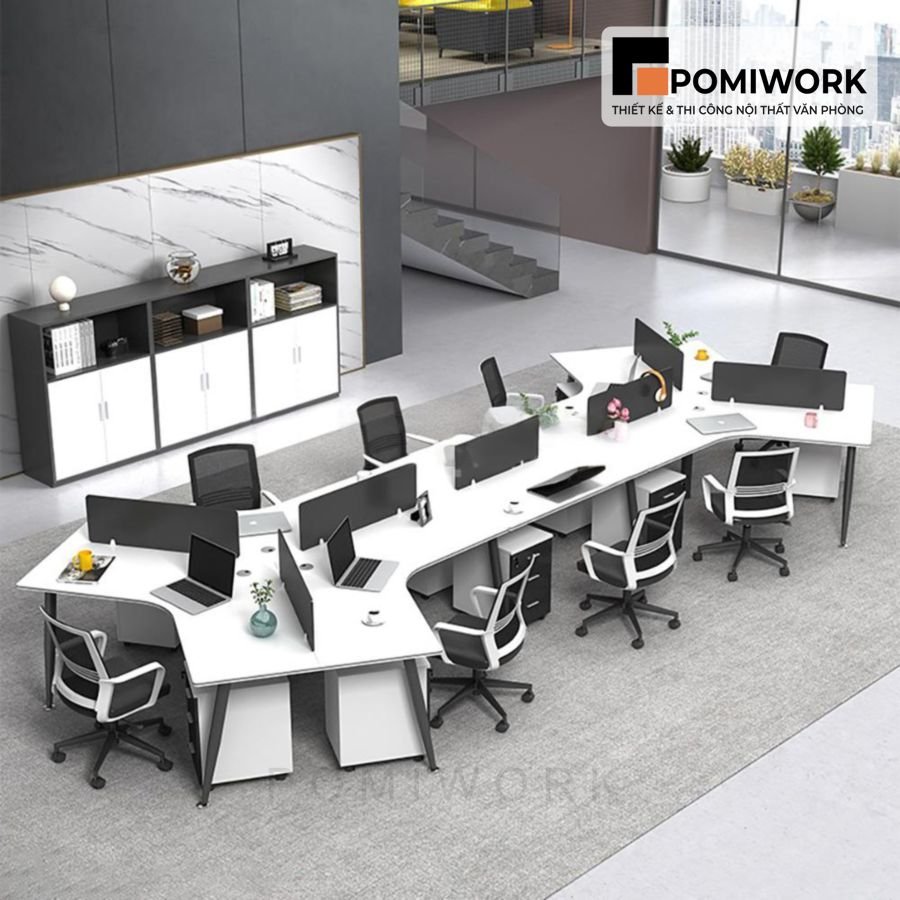 Bàn làm việc nhóm văn phòng 8 người kiểu dáng hiện đại, sang trọng