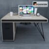 Bàn làm việc thiết kế sang trọng, chân sắt mặt gỗ kèm hộc tủ