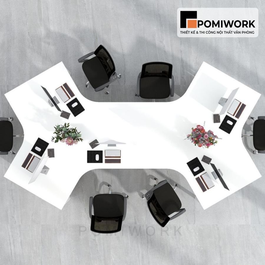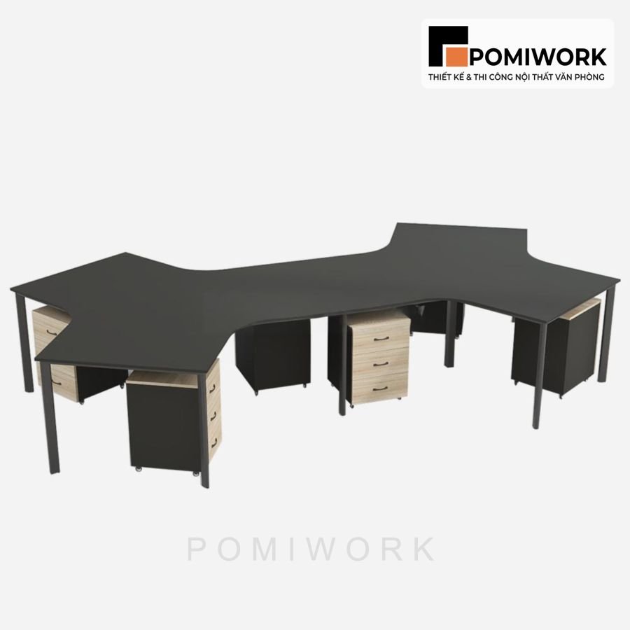Bàn làm việc văn phòng 6 chỗ hiện đại, thiết kế chữ L tiết kiệm không gian