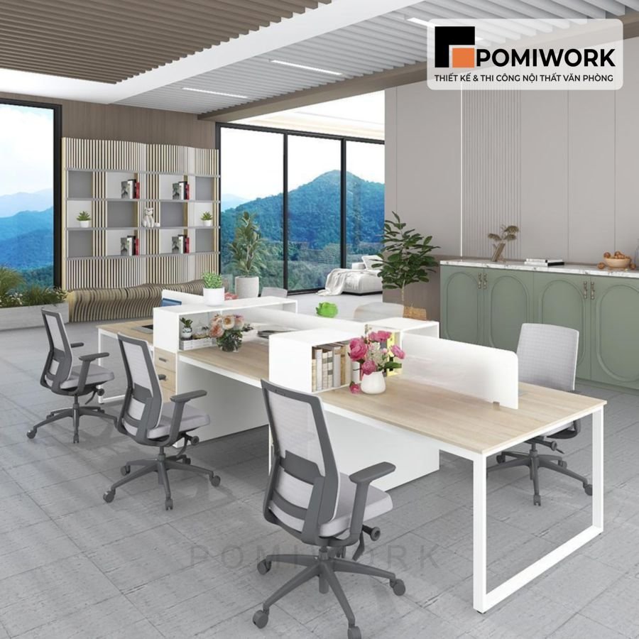 Bàn làm việc văn phòng 6 chỗ hiện đại – Thiết kế tiện nghi, sang trọng