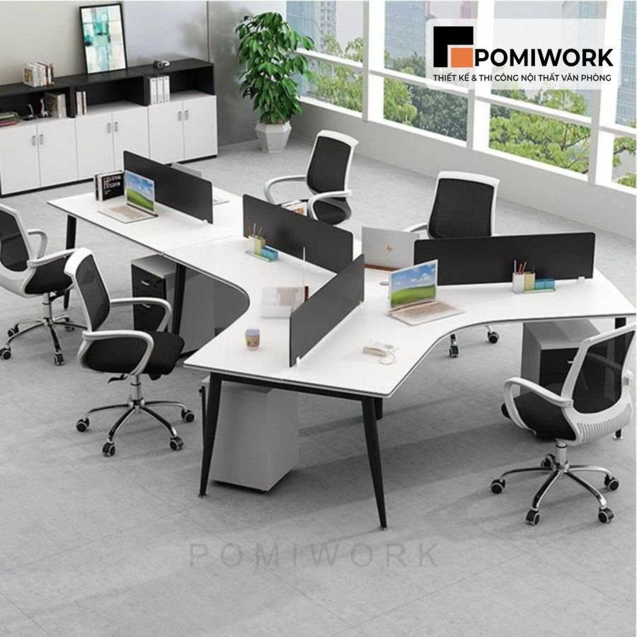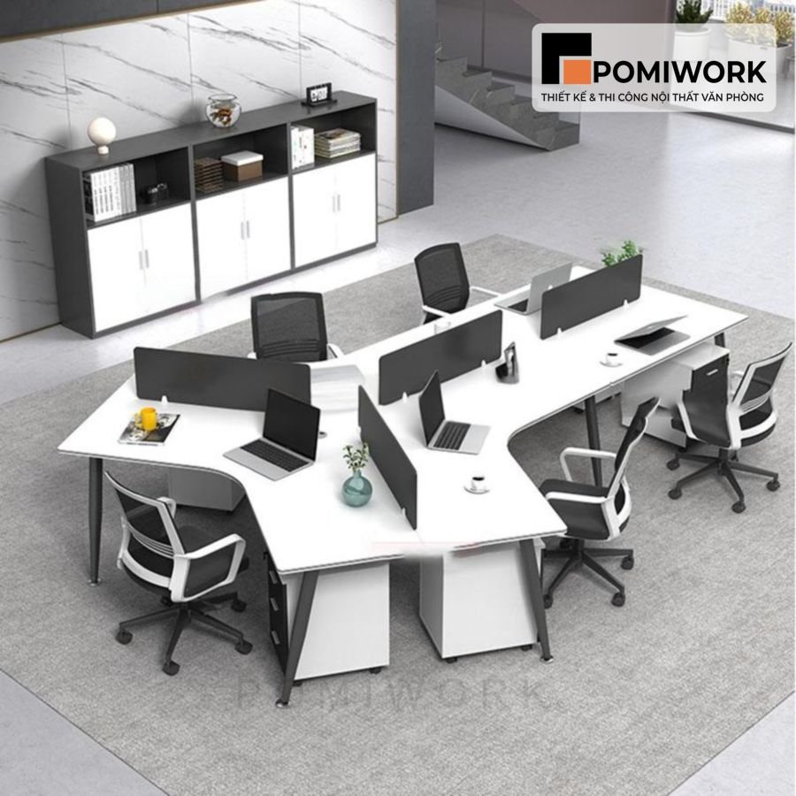 Bàn nhân viên 4 chỗ – Bàn nhóm văn phòng hiện đại, mặt gỗ MDF bền, đẹp