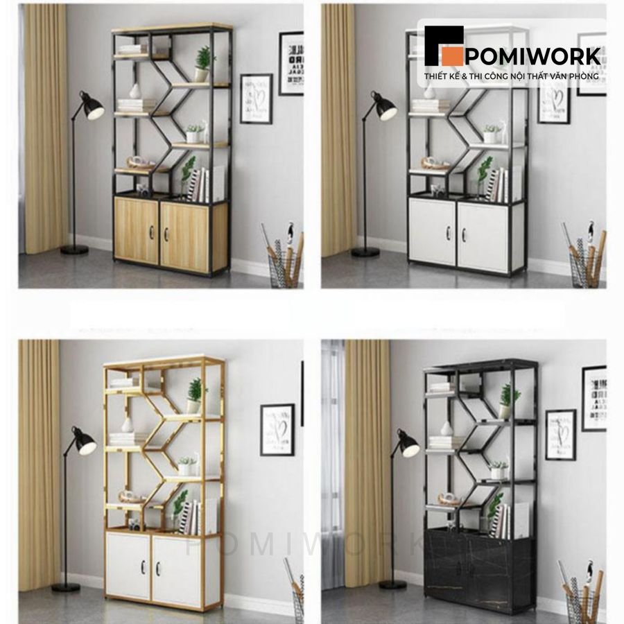 Kệ trang trí văn phòng khung sắt kèm tủ gỗ – Thiết kế hiện đại, tiện dụng