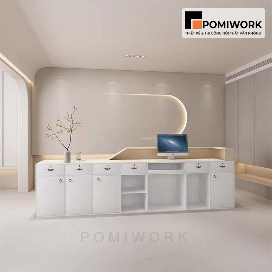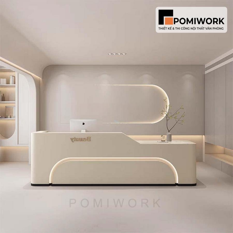 Quầy lễ tân bo cong hiện đại – Bàn tiếp tân sang trọng, tạo ấn tượng chuyên nghiệp