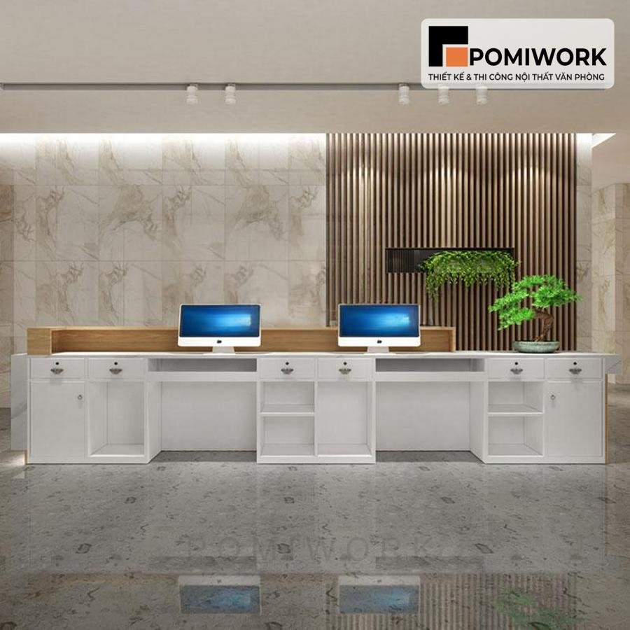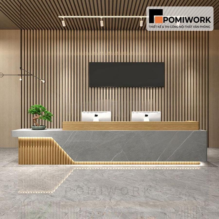 Quầy lễ tân hiện đại thiết kế sang trọng – Bàn tiếp tân nhỏ gọn cho văn phòng chuyên nghiệp