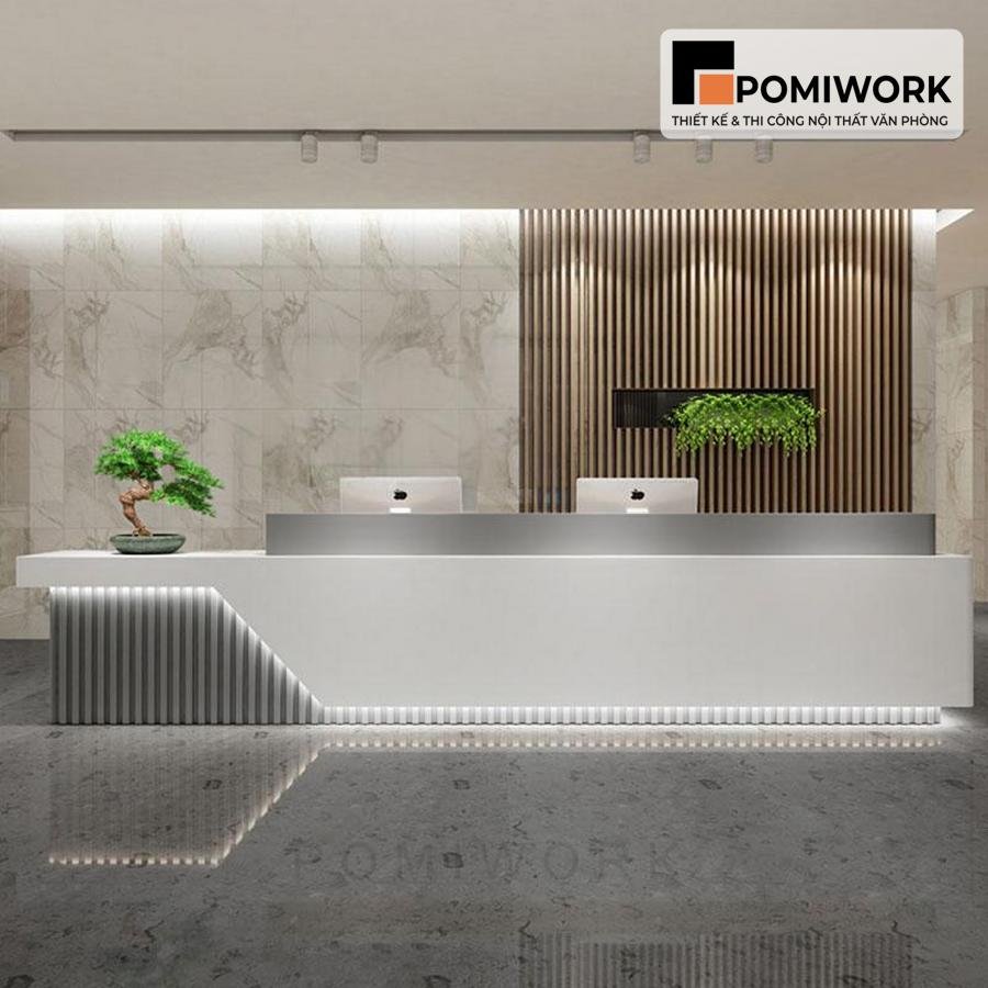 Quầy lễ tân hiện đại – Bàn tiếp tân thiết kế bo góc mềm mại, tinh tế