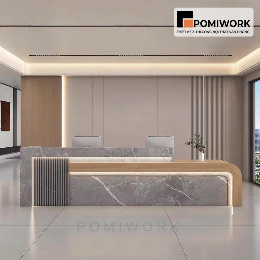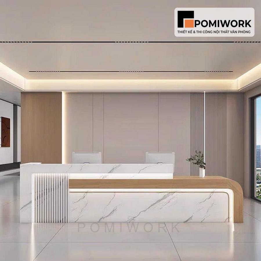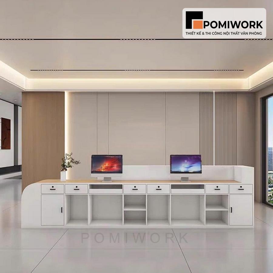 Quầy lễ tân văn phòng hiện đại – Mẫu bàn tiếp tân cao cấp, tạo ấn tượng chuyên nghiệp