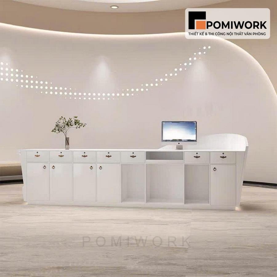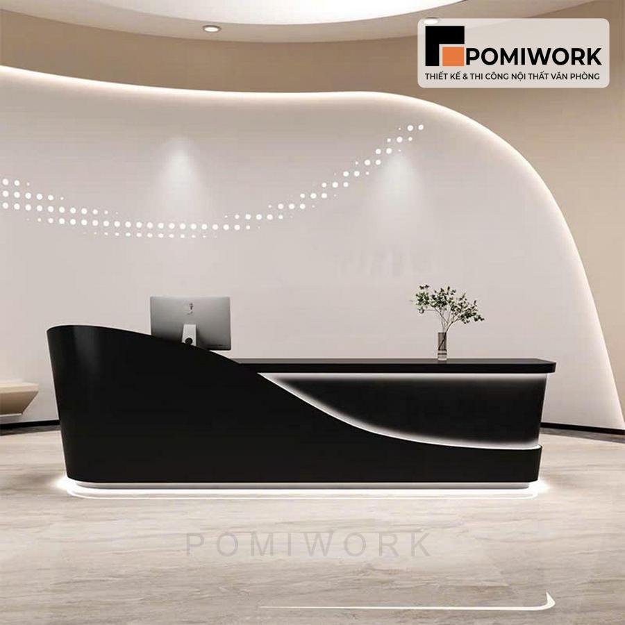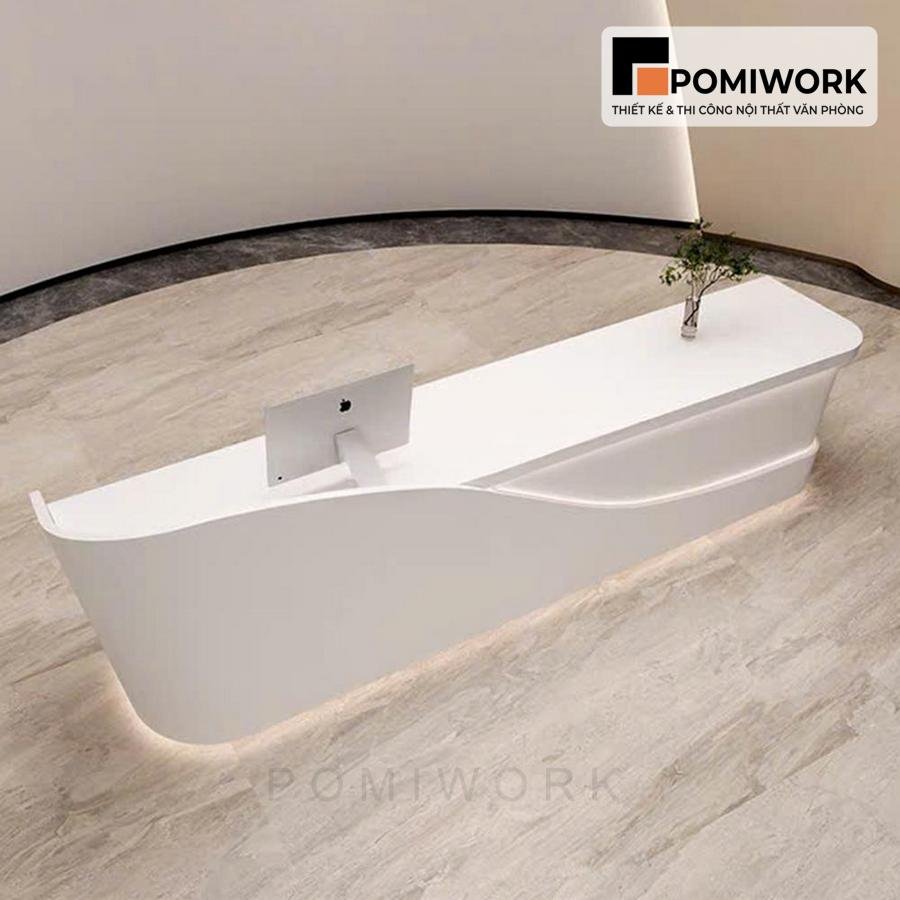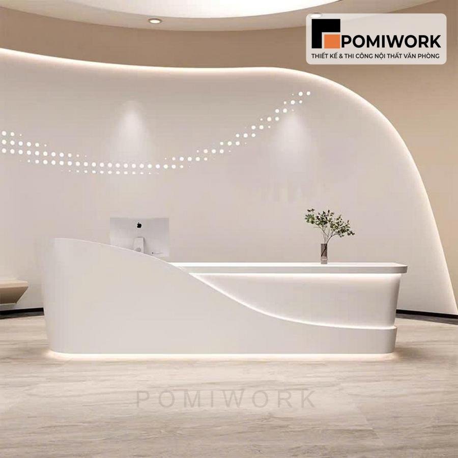 Quầy lễ tân với thiết kế uốn lượn mềm mại – Bàn tiếp tân tối giản, tinh tế cho văn phòng