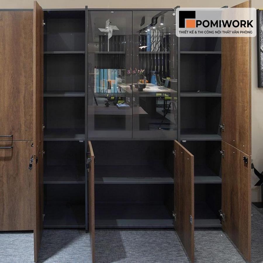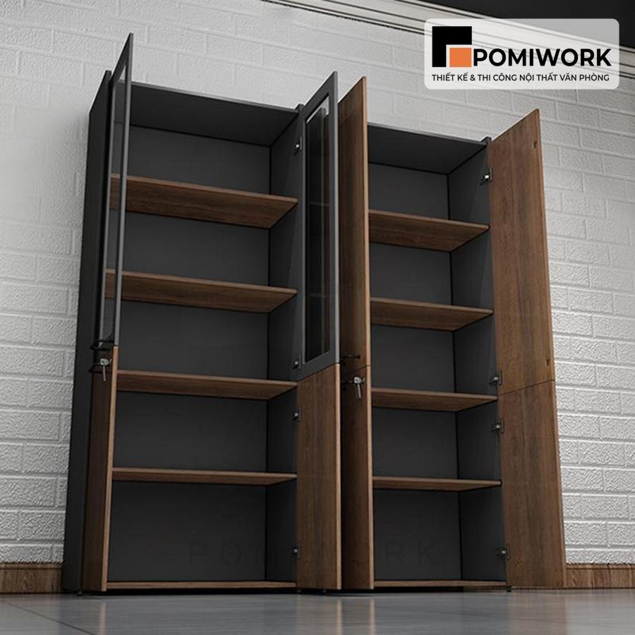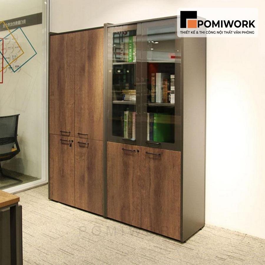 Tủ tài liệu gỗ kết hợp kính – Tủ hồ sơ gỗ hiện đại, sang trọng cho văn phòng