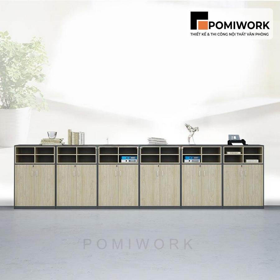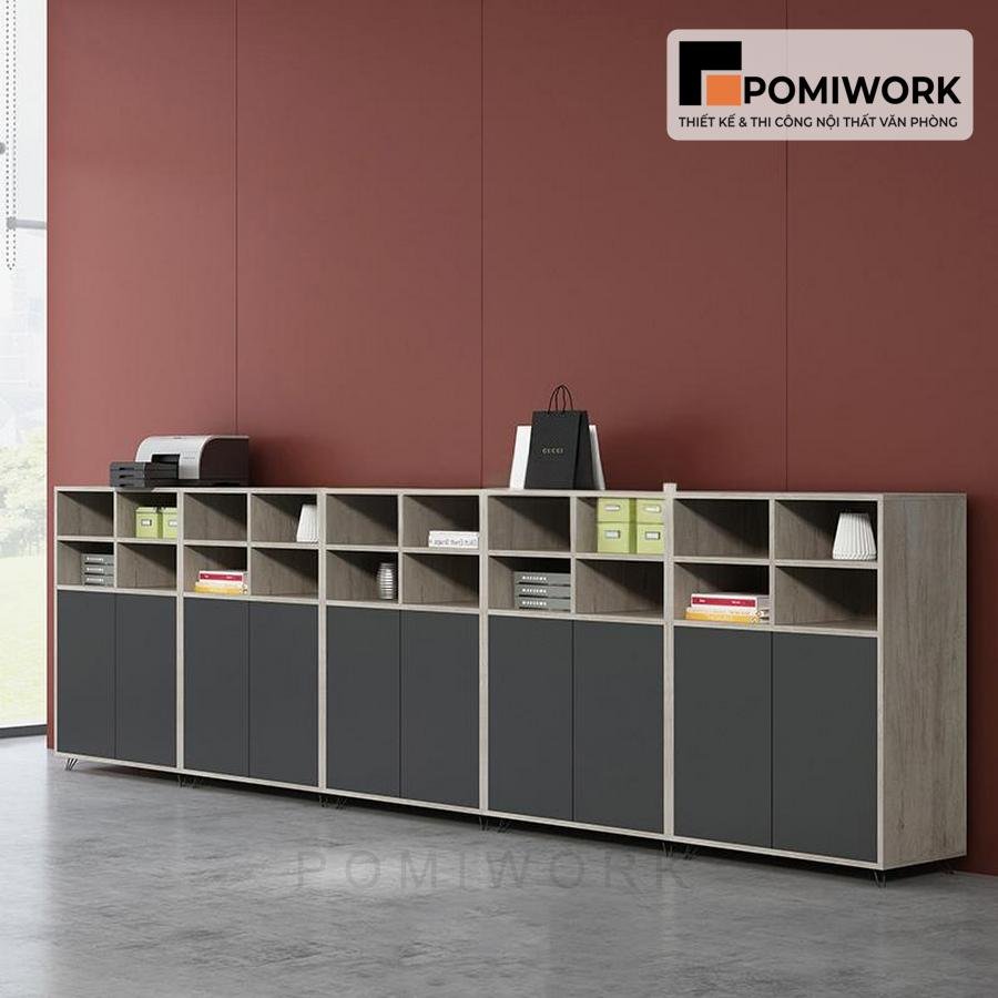 Tủ tài liệu gỗ thấp nhiều ngăn – Tủ hồ sơ gỗ tối giản, gọn gàng