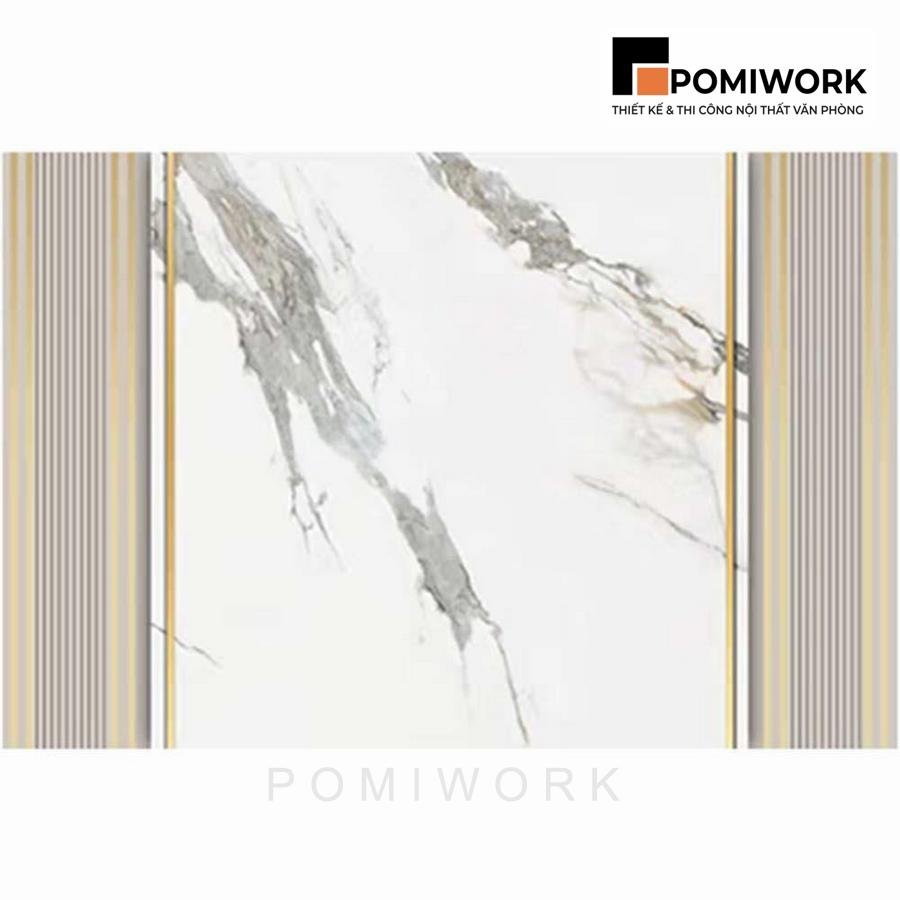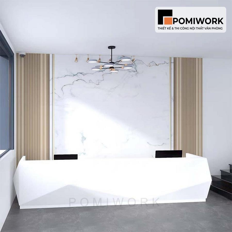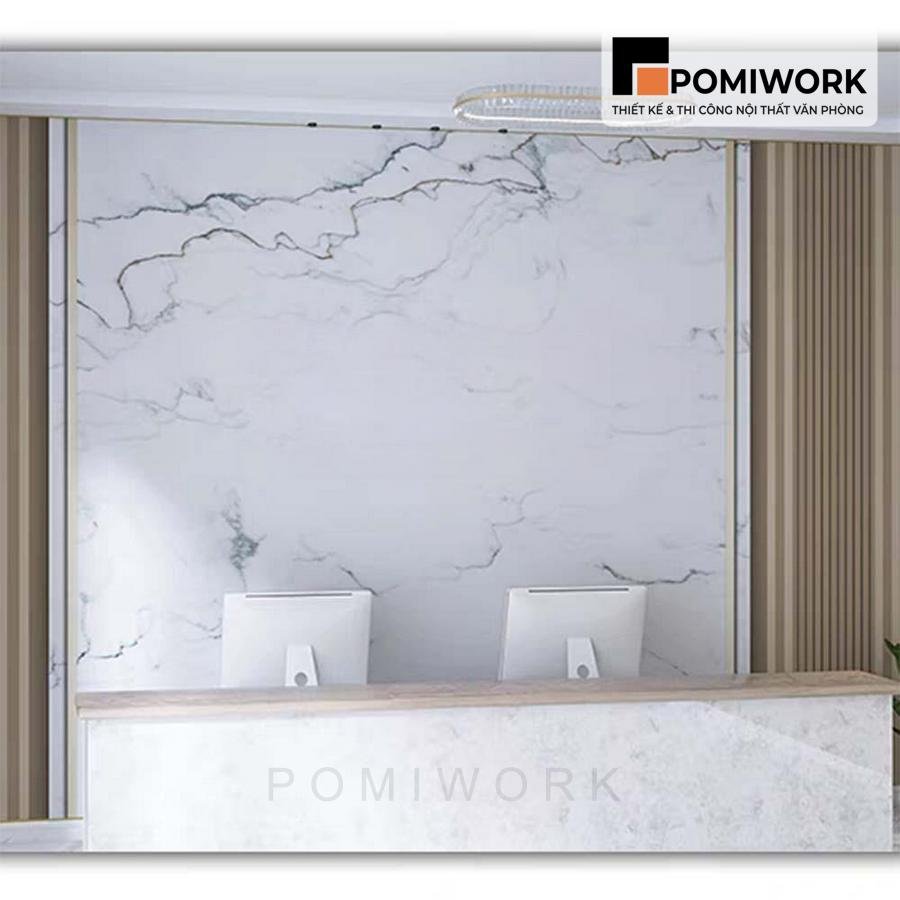 Vách ốp tường đá vân mây – Thiết kế sang trọng cho quầy lễ tân văn phòng